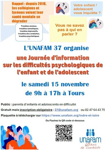 L'UNAFAM vous propose une journée d'information le samedi 15 novembre à Tours.