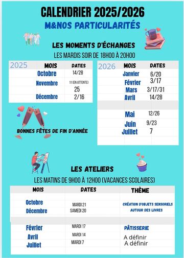 Le programme des rencontres entre parents proposées par la Plateforme de répit Parent'ailes pour le dernier trimestre 2025.