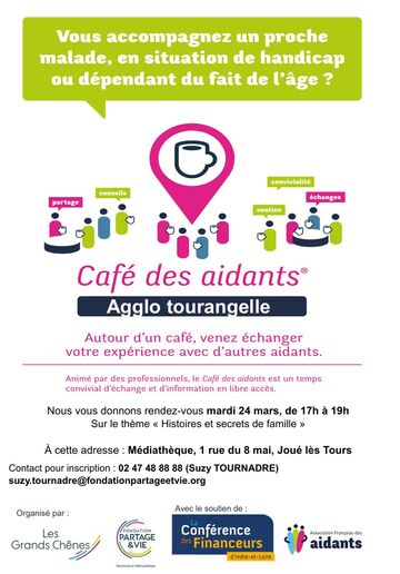 Autour d'un café, d'un thé, venez échanger votre expérience avec d'autres aidants et aidants, dans un espace convivial de soutien et d'inforamtions.